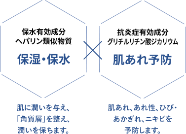 肌の水分を抱え込むようにして保湿し、角質層を整え、乾燥を防ぎます。