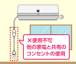 設置スペースが足りない場合、ご注文いただいたエアコンが取り付けられず、ご注文をキャンセルさせていただく可能性がありますので、ご注文前に必ず設置場所の広さをご確認ください。 - 室内機設置場所付近の壁から電源が確保できるかを必ずご確認ください。エアコン専用コンセントではない場合は追加工事(追加料金)が必要です。