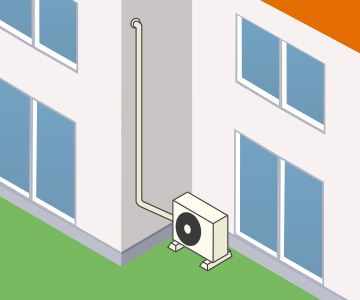 - ・室内外に配管を露出せず、壁の中に配管を通す「隠蔽配管」の場合、設置状況によって、露出の工事への切替えや、設置工事をお断りさせていただく場合もございます。