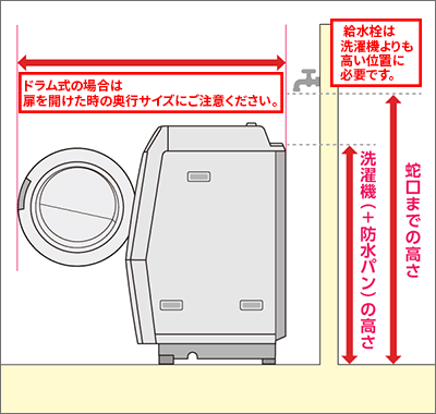 給水栓の位置は洗濯機の高さよりも上にありますか?
