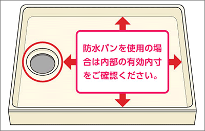 防水パンがある場合、平面部の有効内寸が洗濯機のサイズよりも大きいですか?